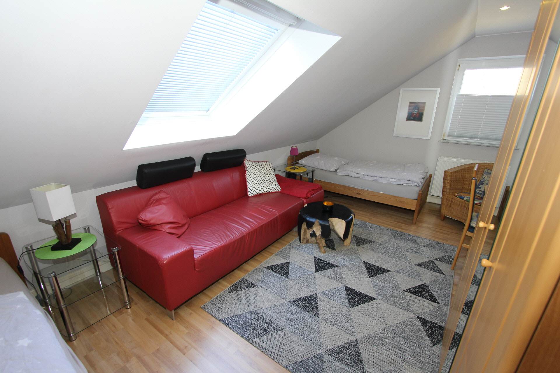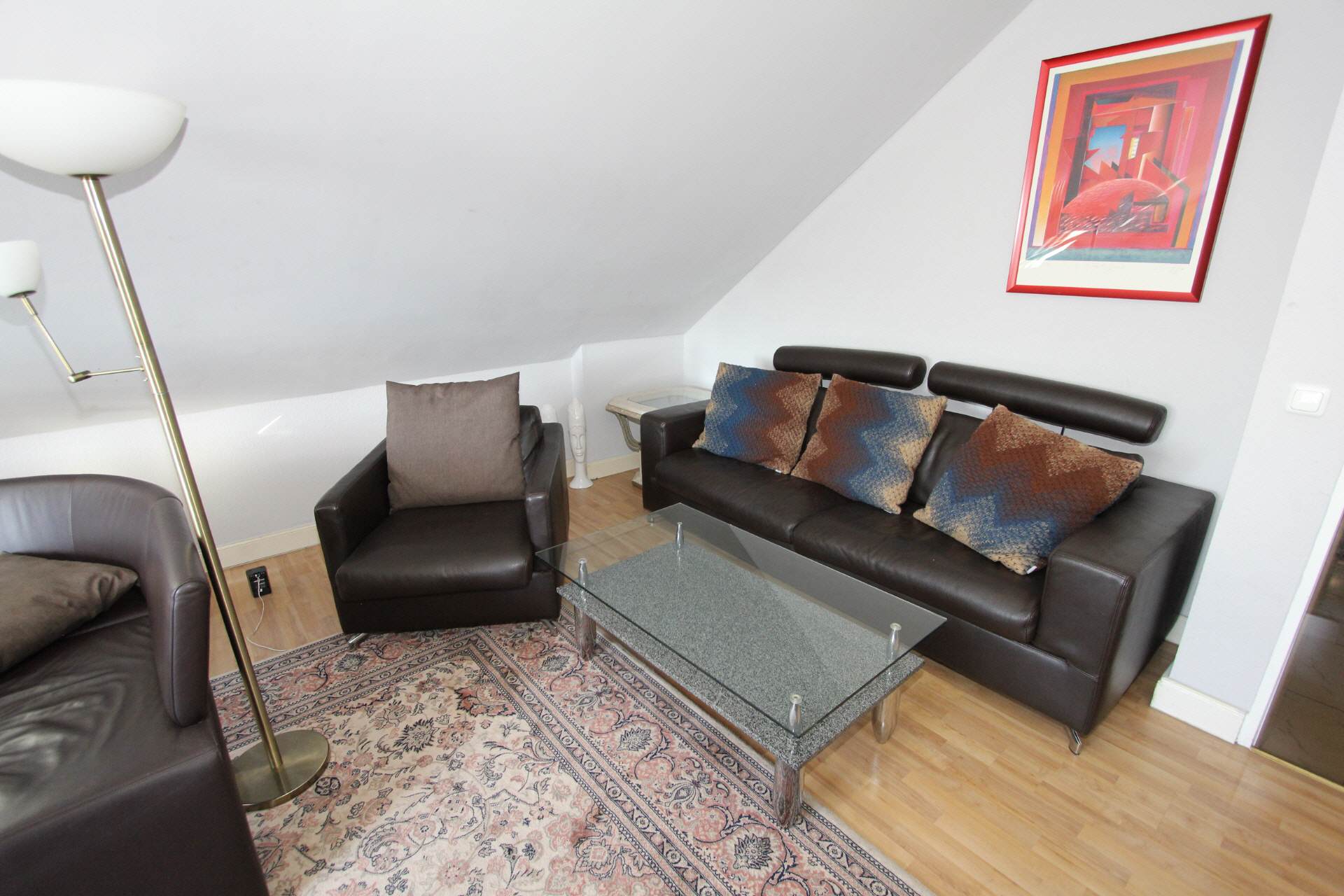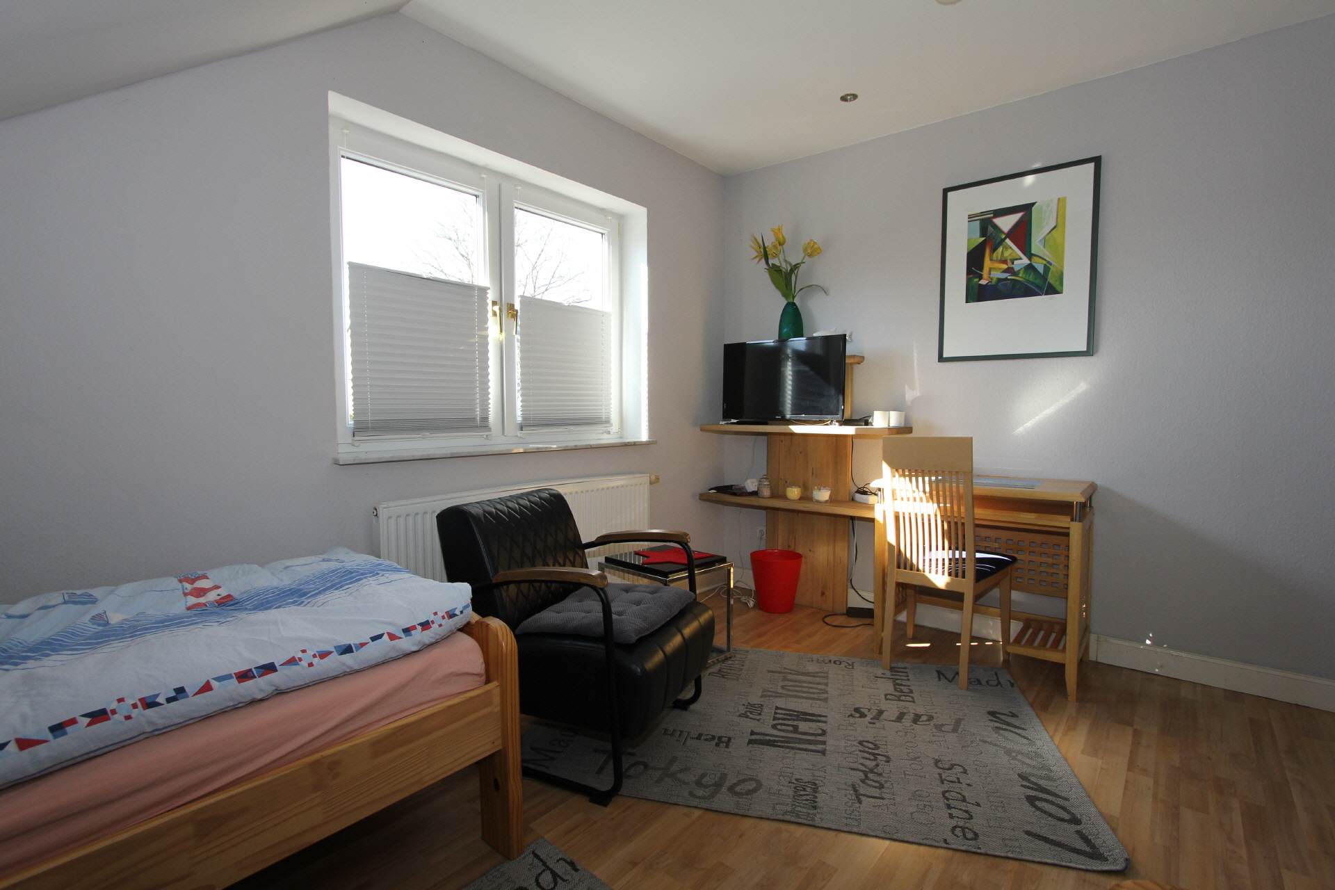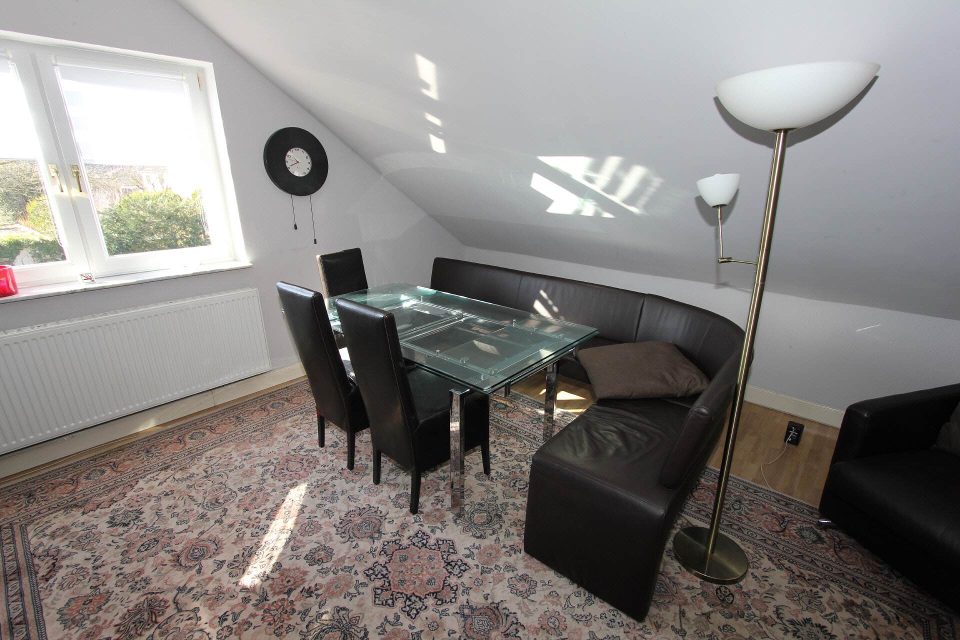 The apartment is located on the top floor of a three-family house, directly at the local recreation area Kiel-Russee. The apartment has a size of approximately 90 square meters and is exclusively furnished.