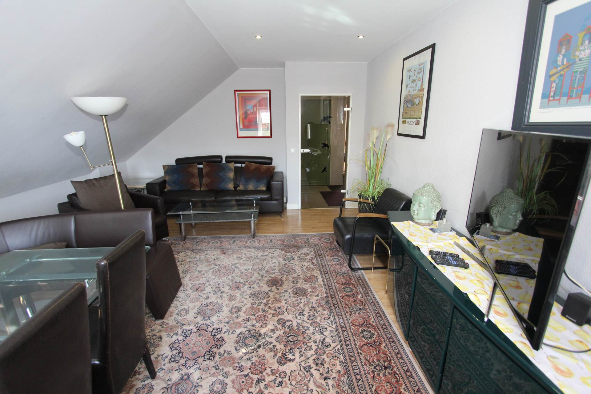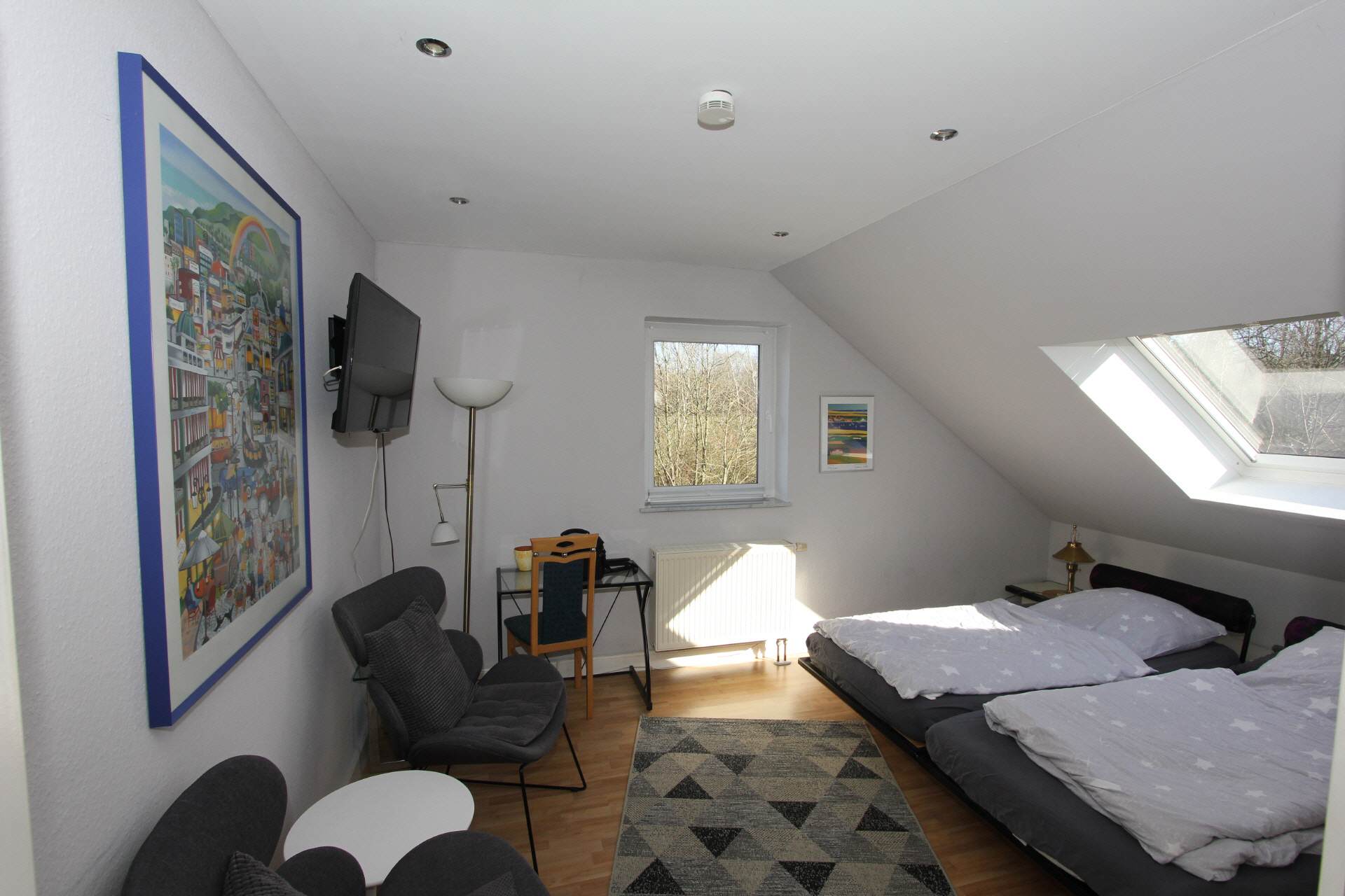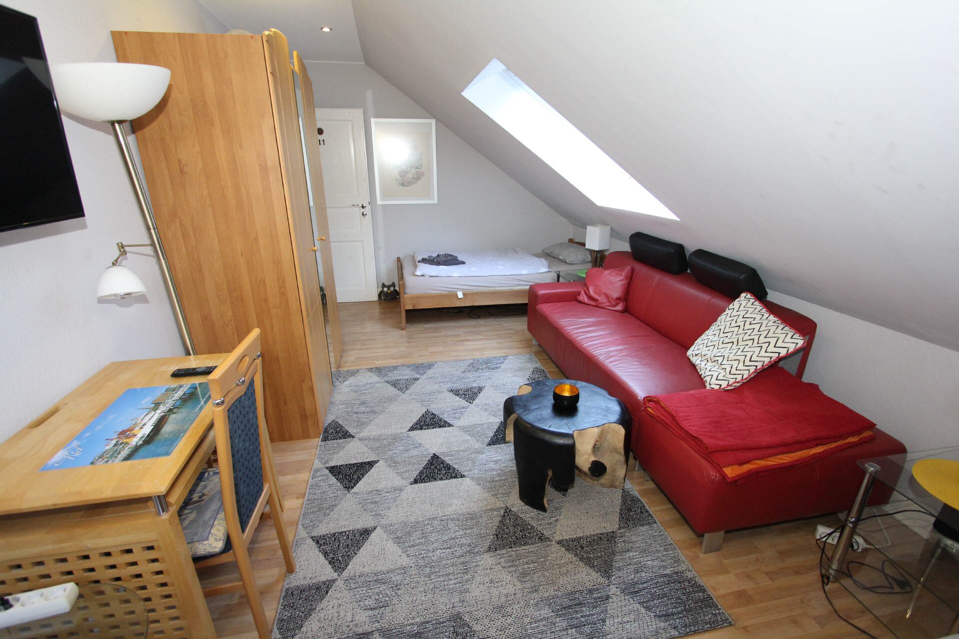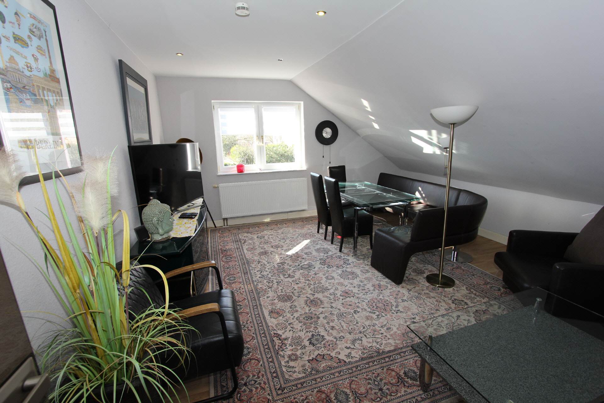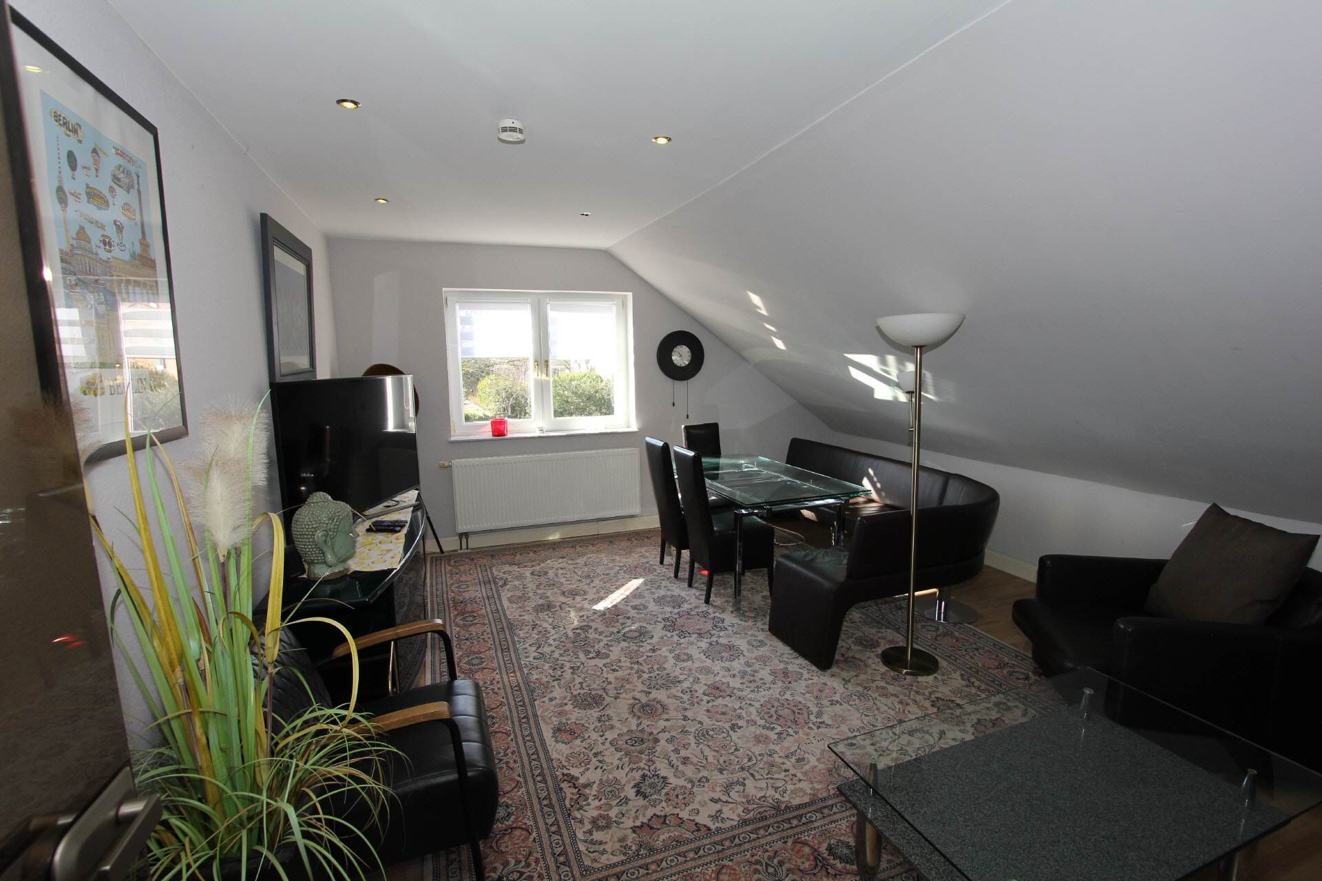 The apartment is located on the top floor of a three-family house, directly at the local recreation area Kiel-Russee. The apartment has a size of approximately 90 square meters and is exclusively furnished.