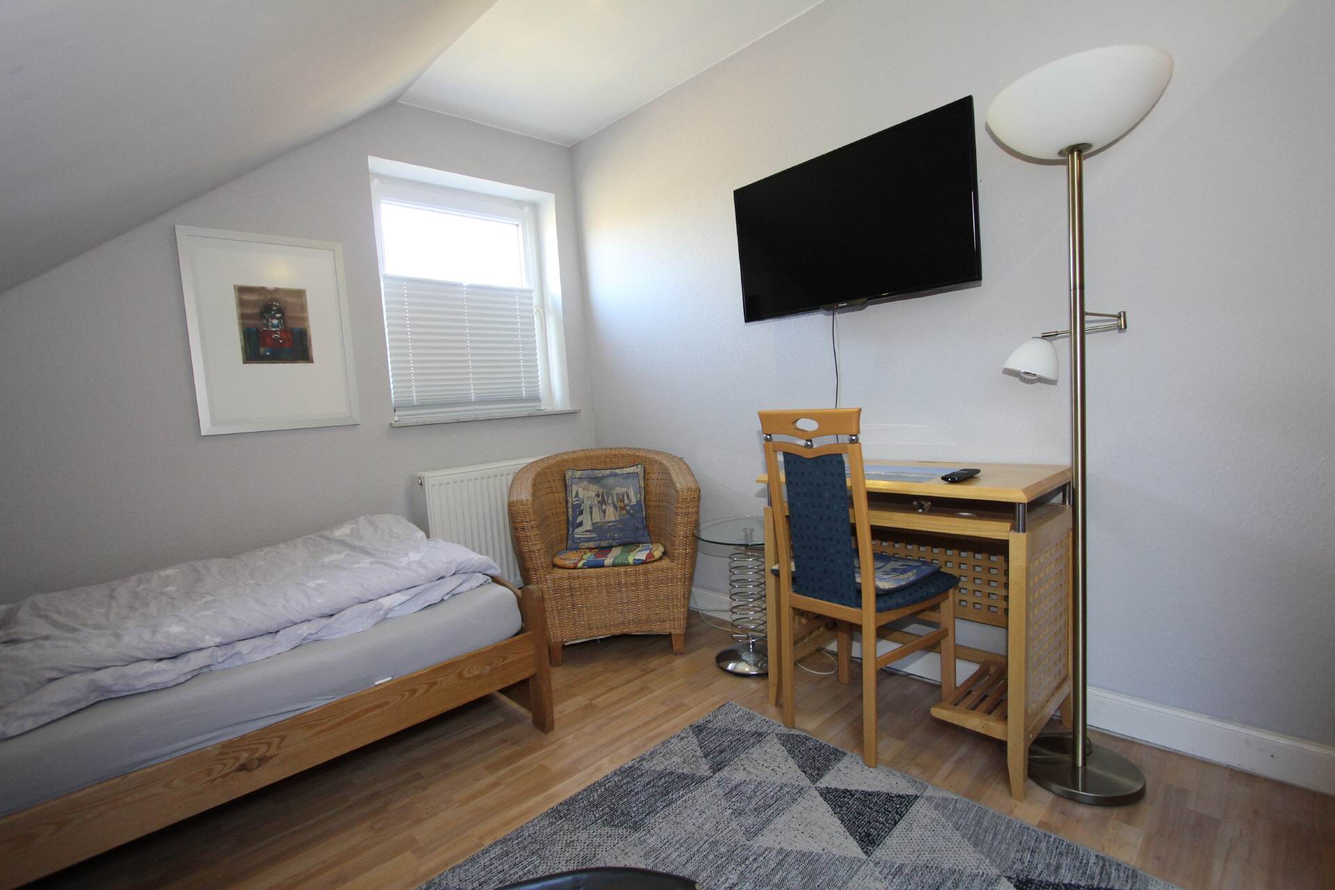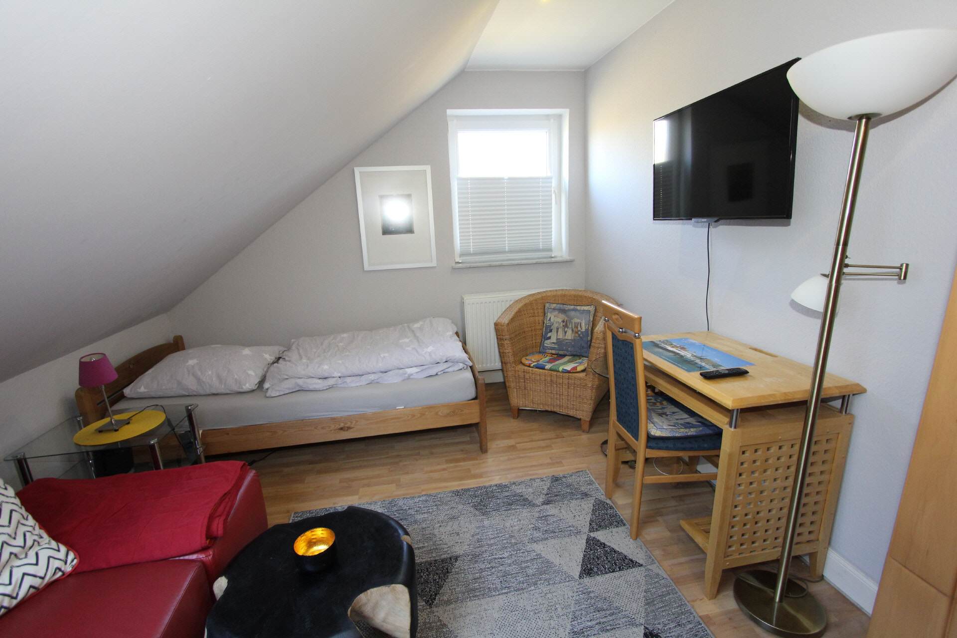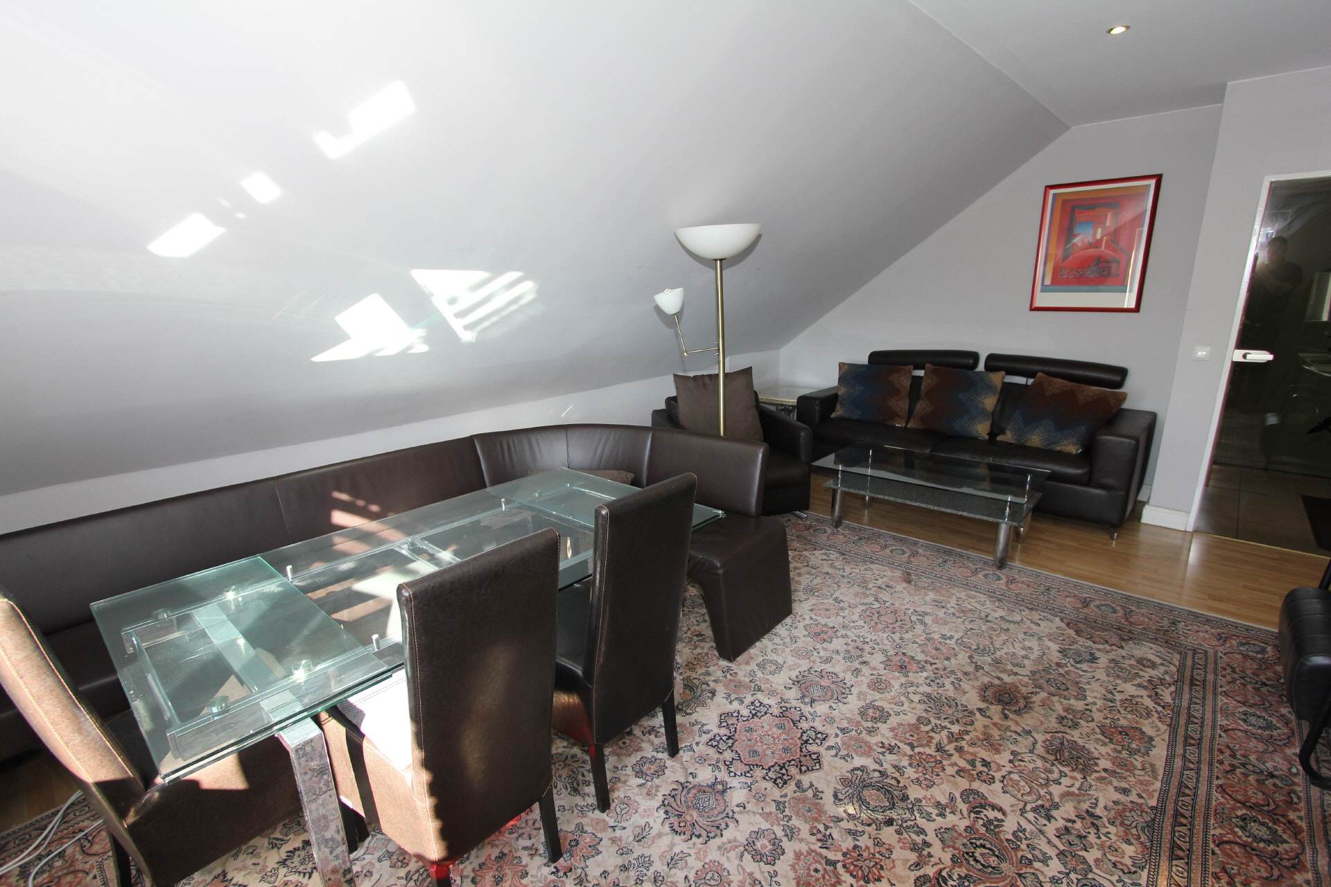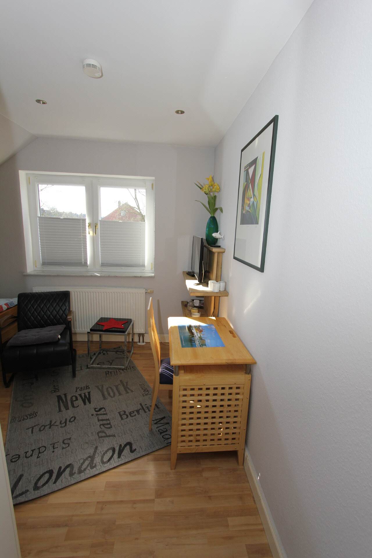 The apartment is located on the top floor of a three-family house, directly at the local recreation area Kiel-Russee. The apartment has a size of approximately 90 square meters and is exclusively furnished.