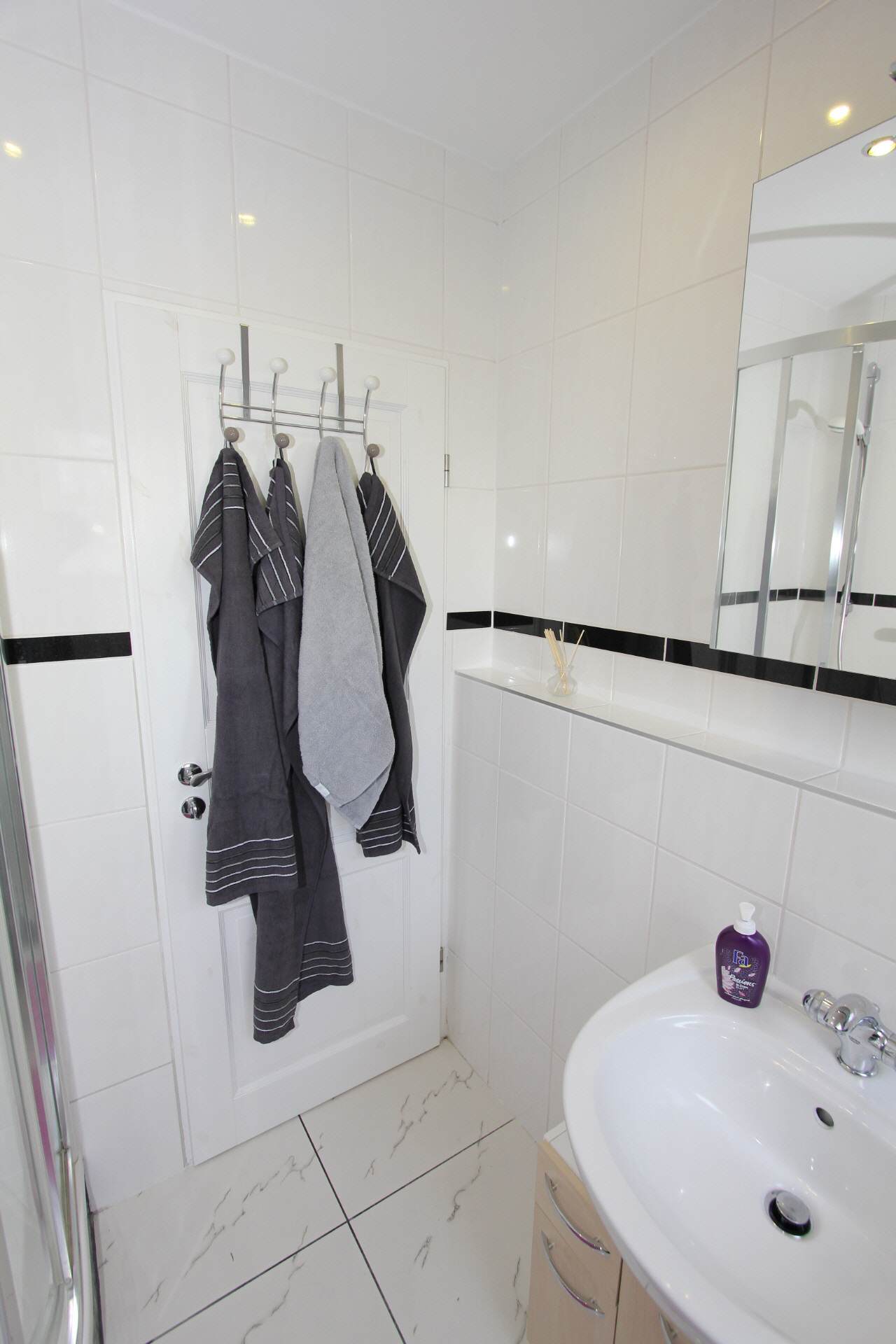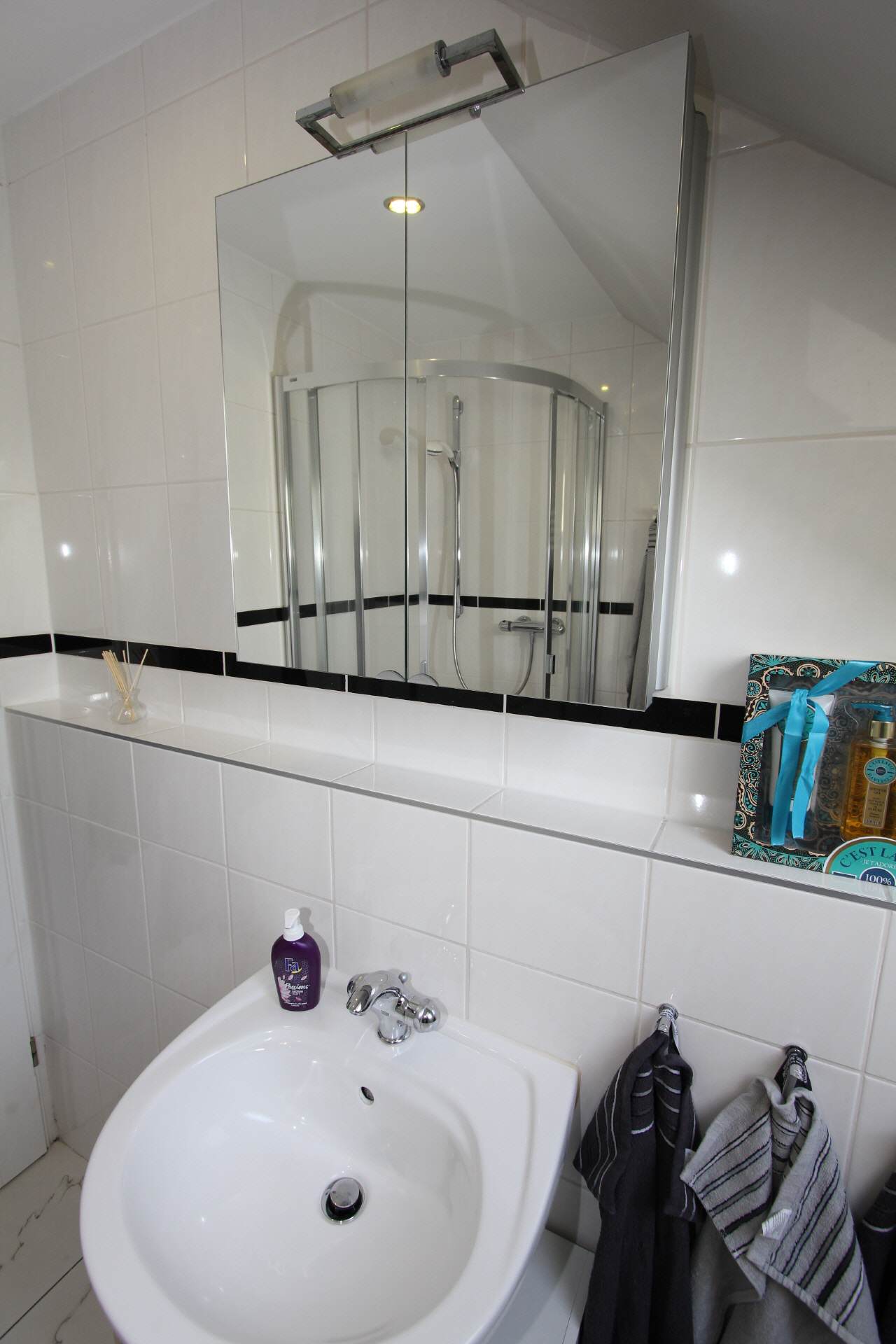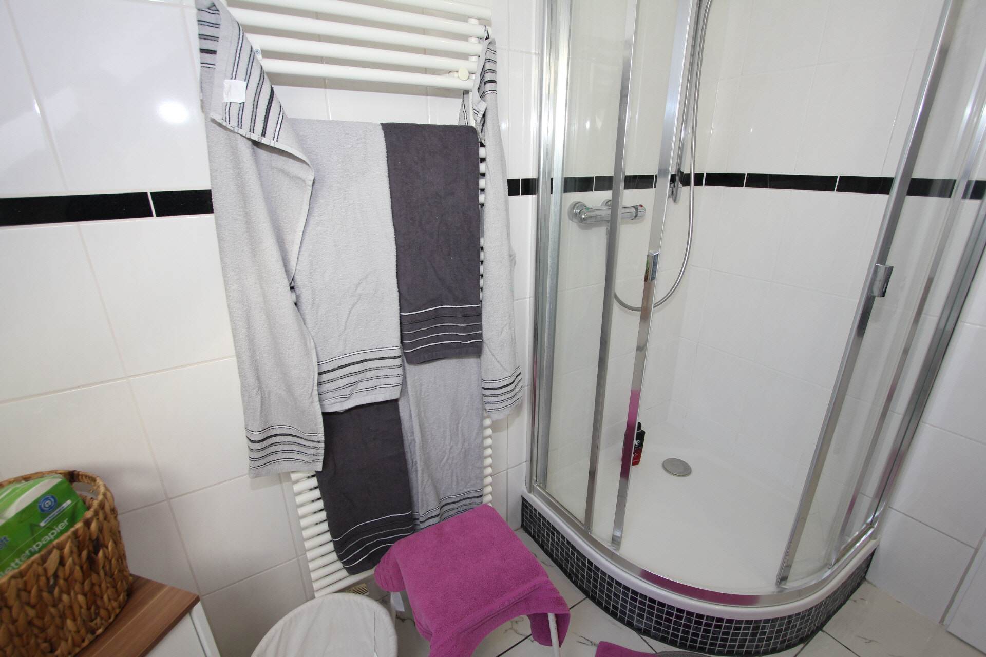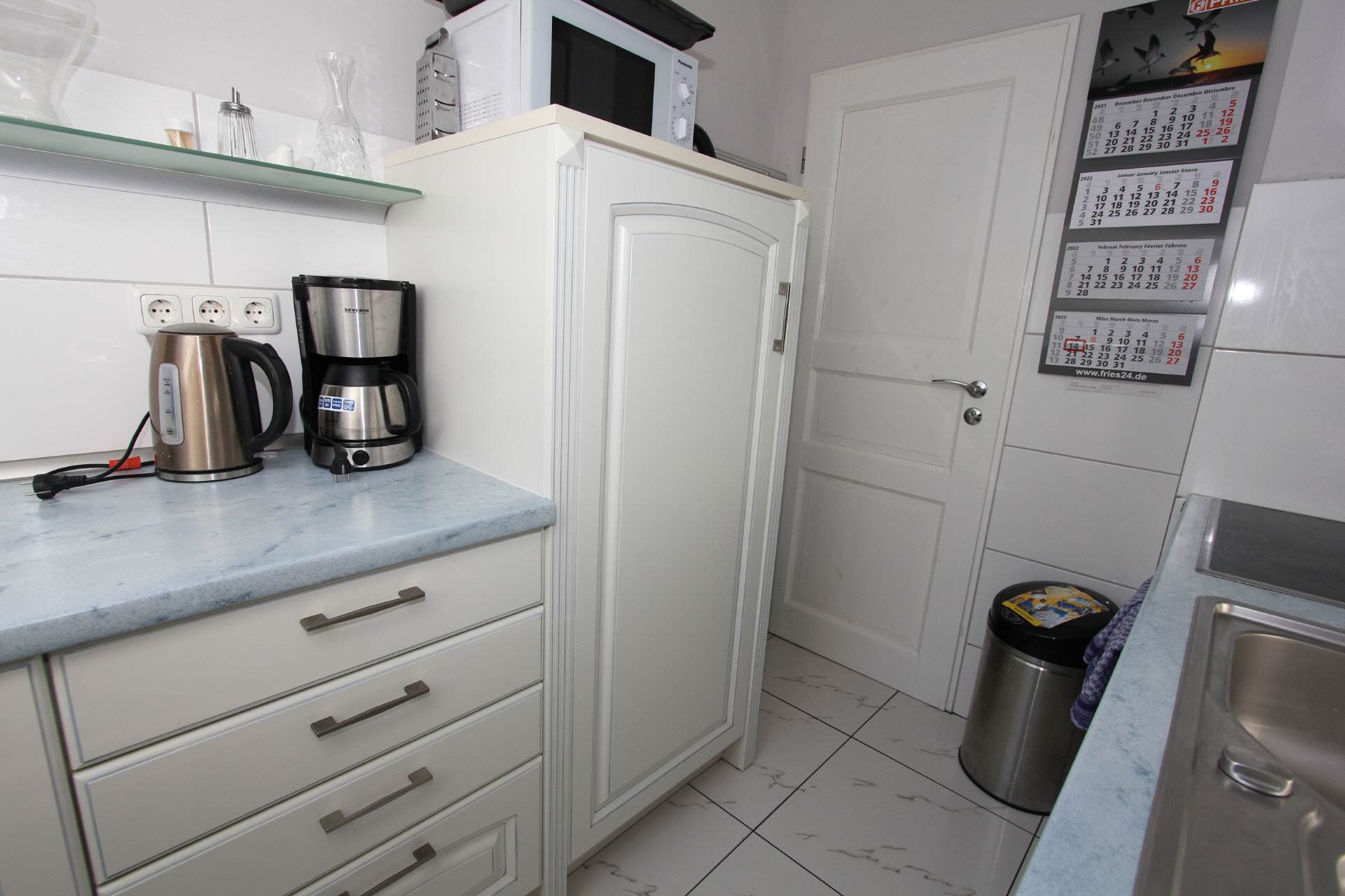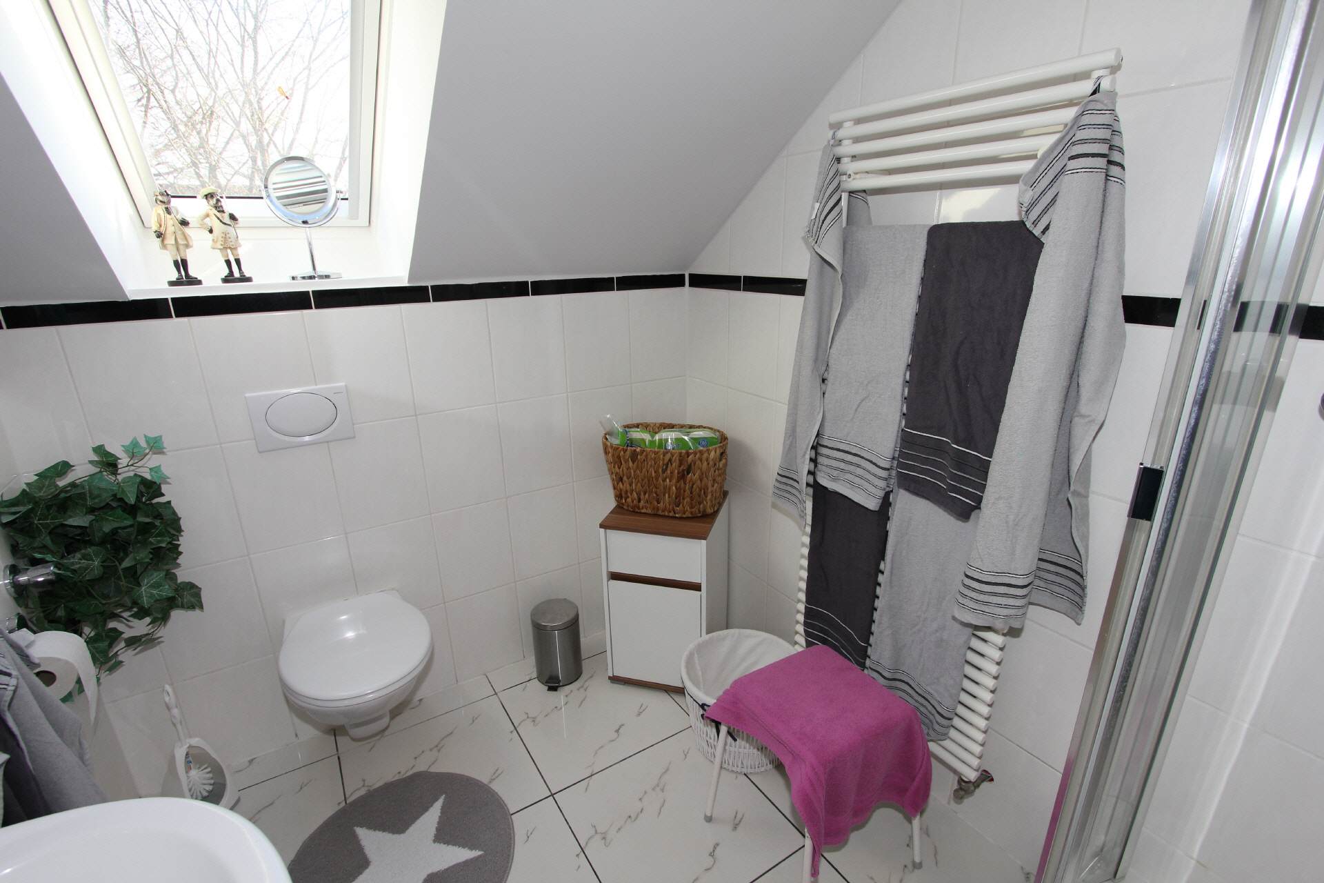 The kitchen is fully equipped. Of course, this includes a toaster, a coffee machine, a sink, a large refrigerator, a dishwasher, an electric cooker and a microwave oven. Dishcloths and tea towels are also available.