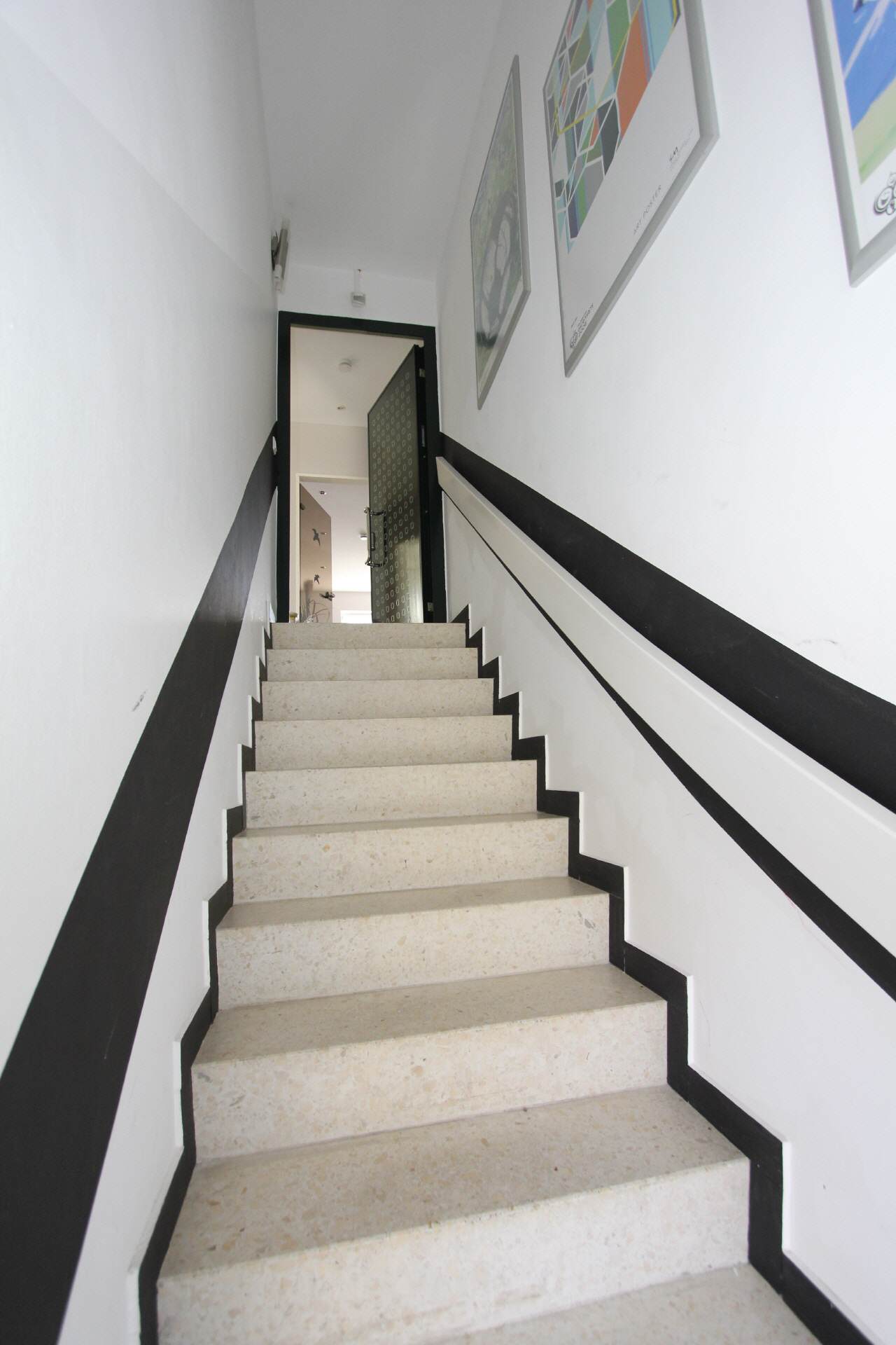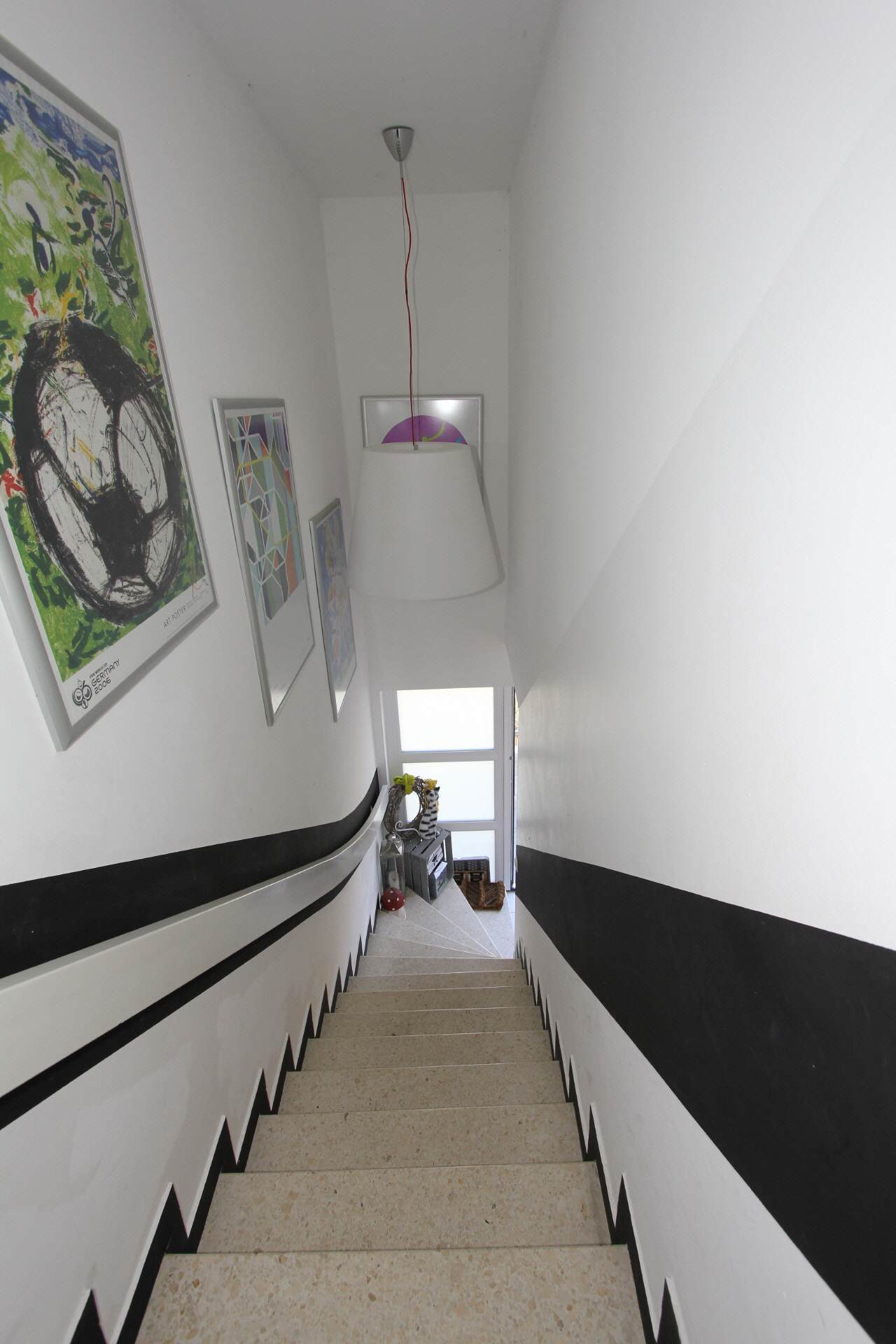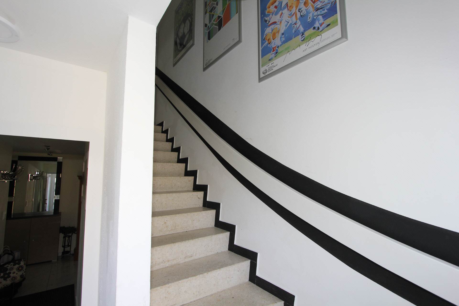 There is a dressing room in the hallway. The staircase is decorated with high quality prints.