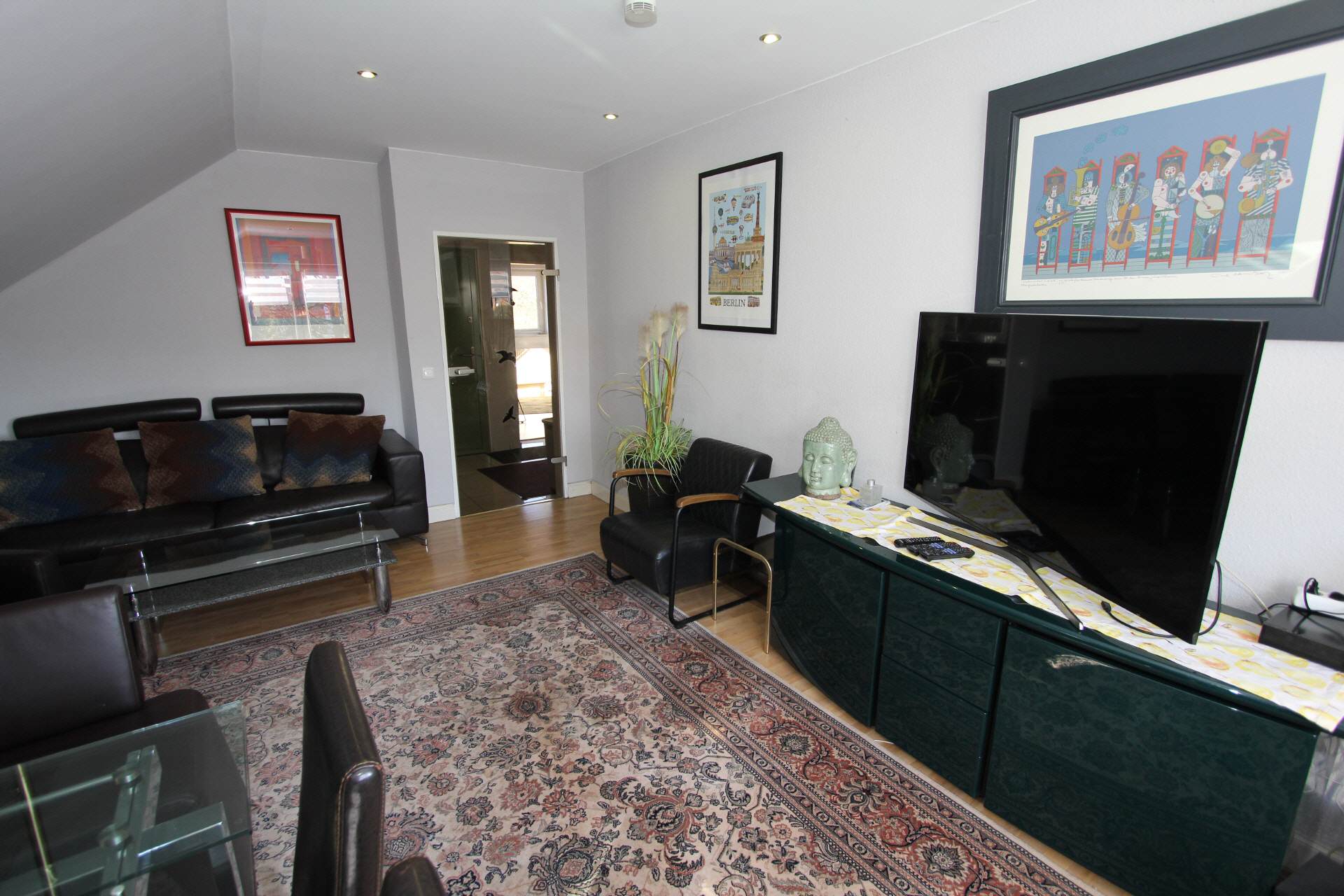 The living room or lounge is approximately 26 square meters and is comfortably and exclusively furnished. Here you will find a cozy sofa seating area, a dining area with six seats. A large LCD TV and a stereo system provide entertainment.