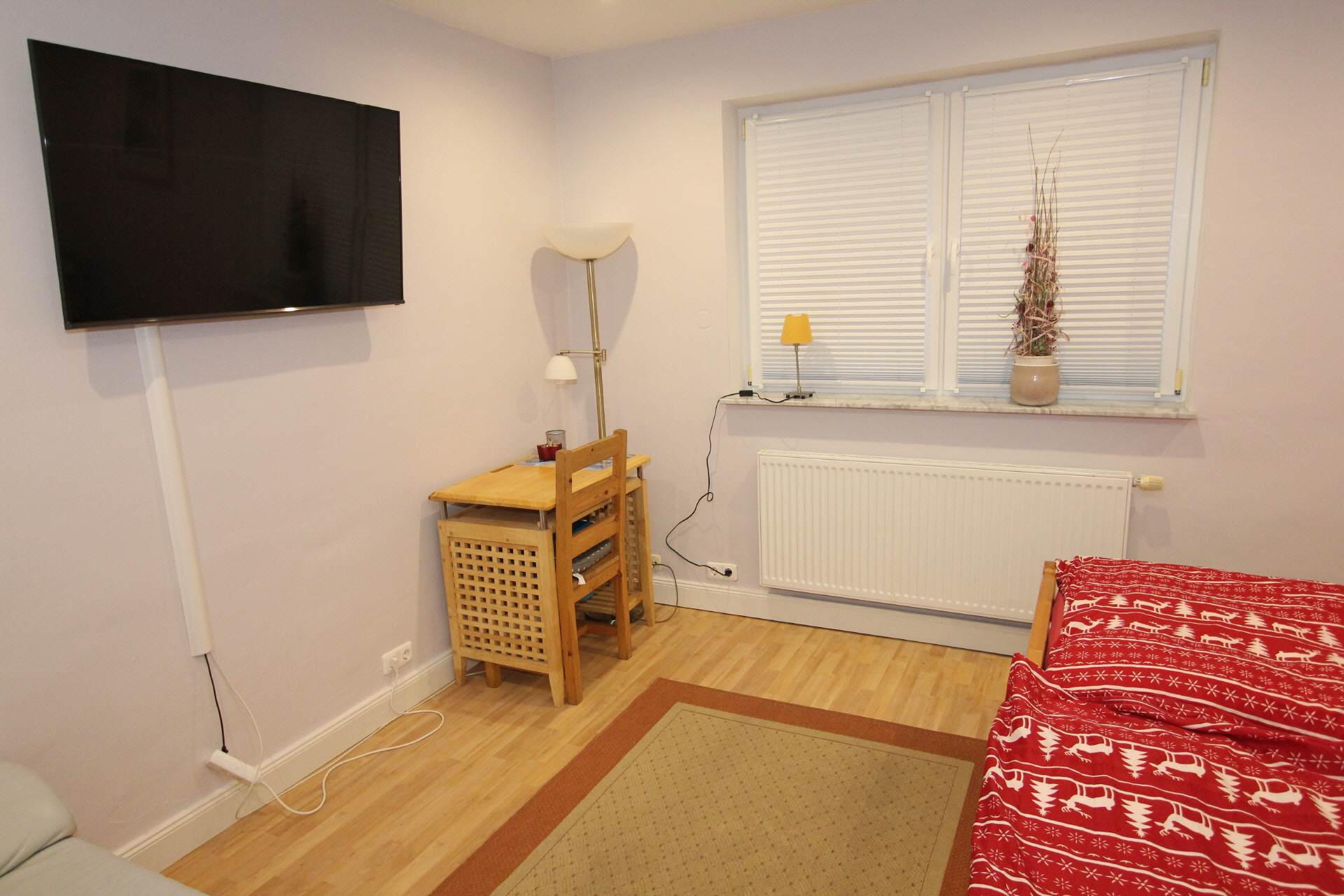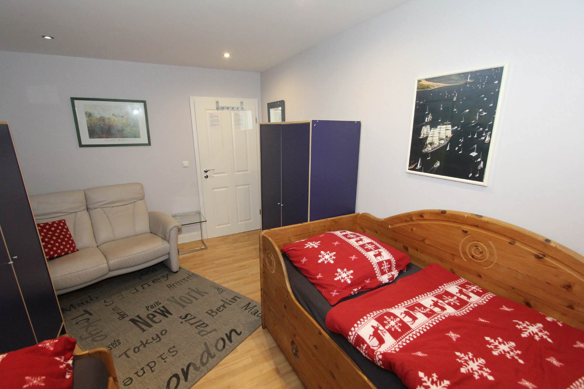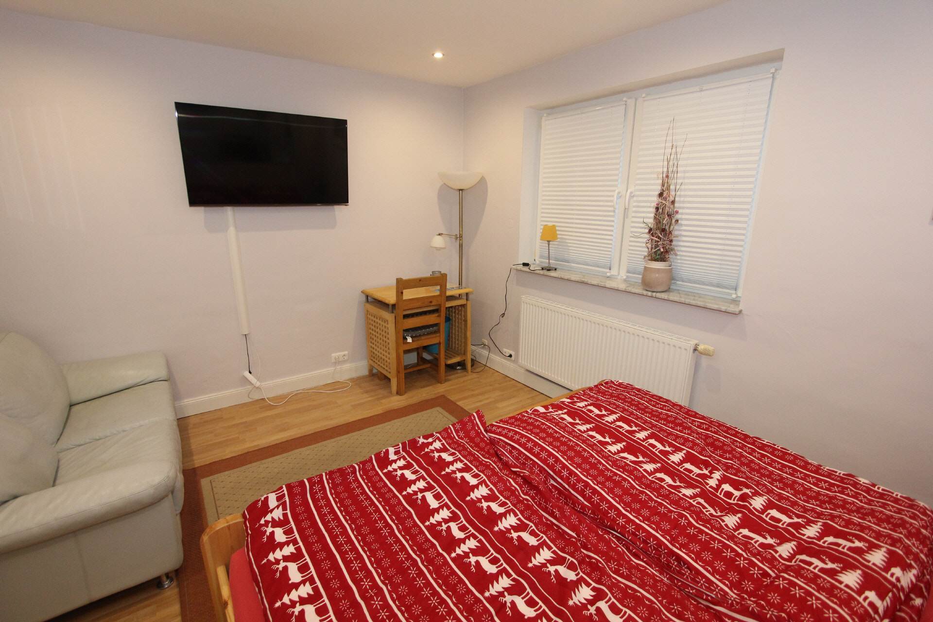 In the four cozy bedrooms there are two single beds with bedside tables and a wardrobe with enough space for your luggage. Furthermore, a sofa and a desk with a chair as well as an LCD TV are included.